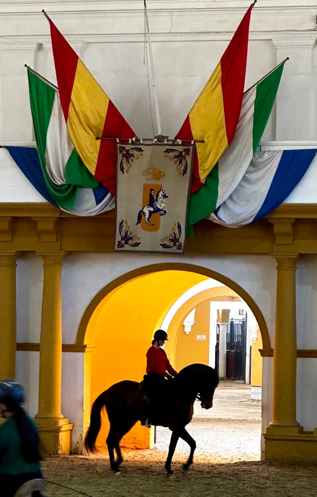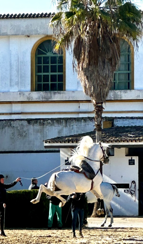 - a visit to watch a rigorous Monday of training for Spanish purebred (P.R.E.) horses and their riders at the Fundacion Real Escuela Andaluza del Arte Ecuestre.