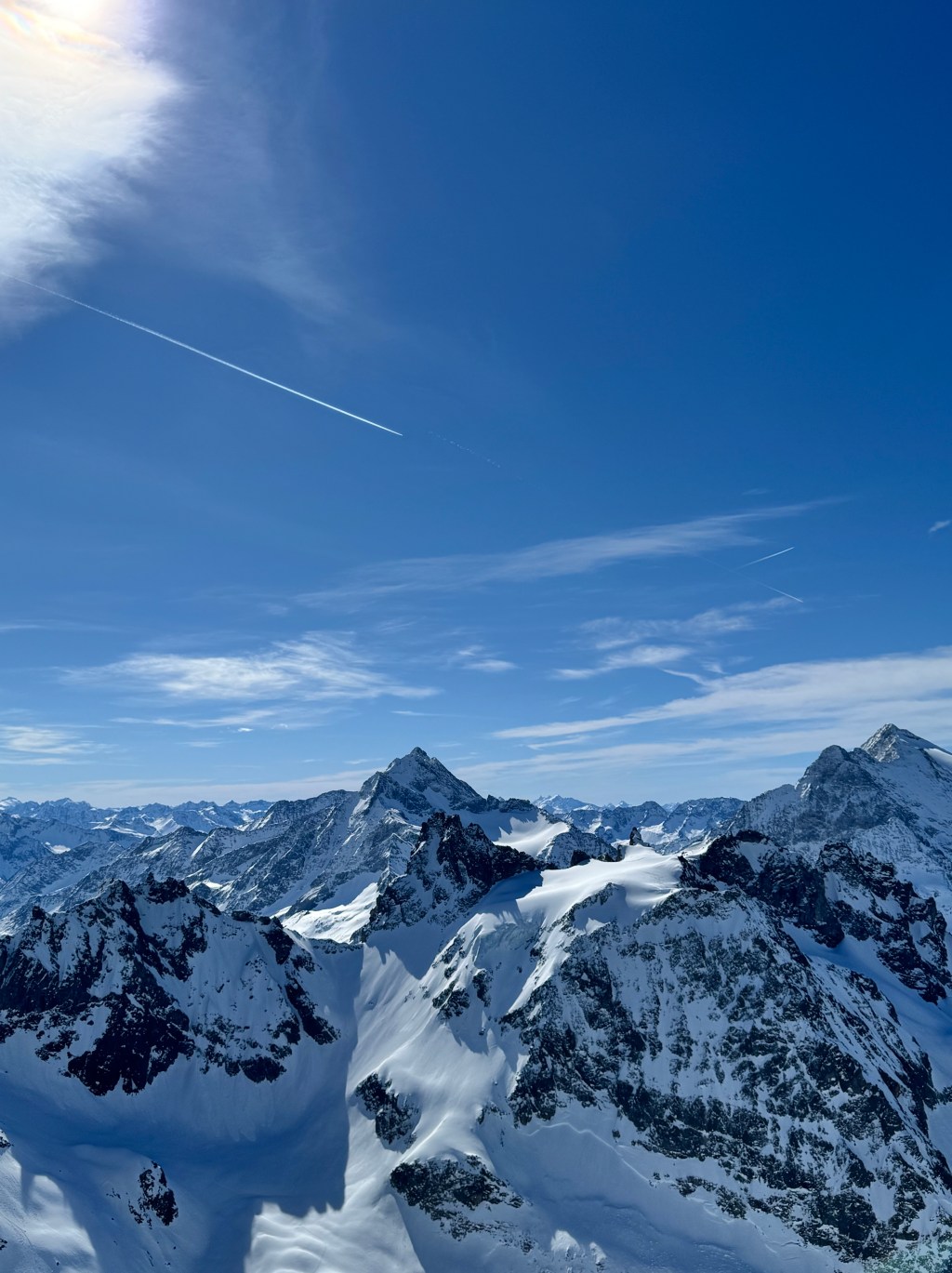 Engleberg gave us an epic Easter ski day we’ll never forget – a bluebird Sunday in the Swiss Alps following a snow storm earlier in the week. Tucked between rocky peaks, the steep slopes and long ski runs at Titlis presented us with the perfect challenge. Riding up on the silent, smoothly Swiss-engineered gondola, we started at the Titlis peak itself which is at 10,000 feet.